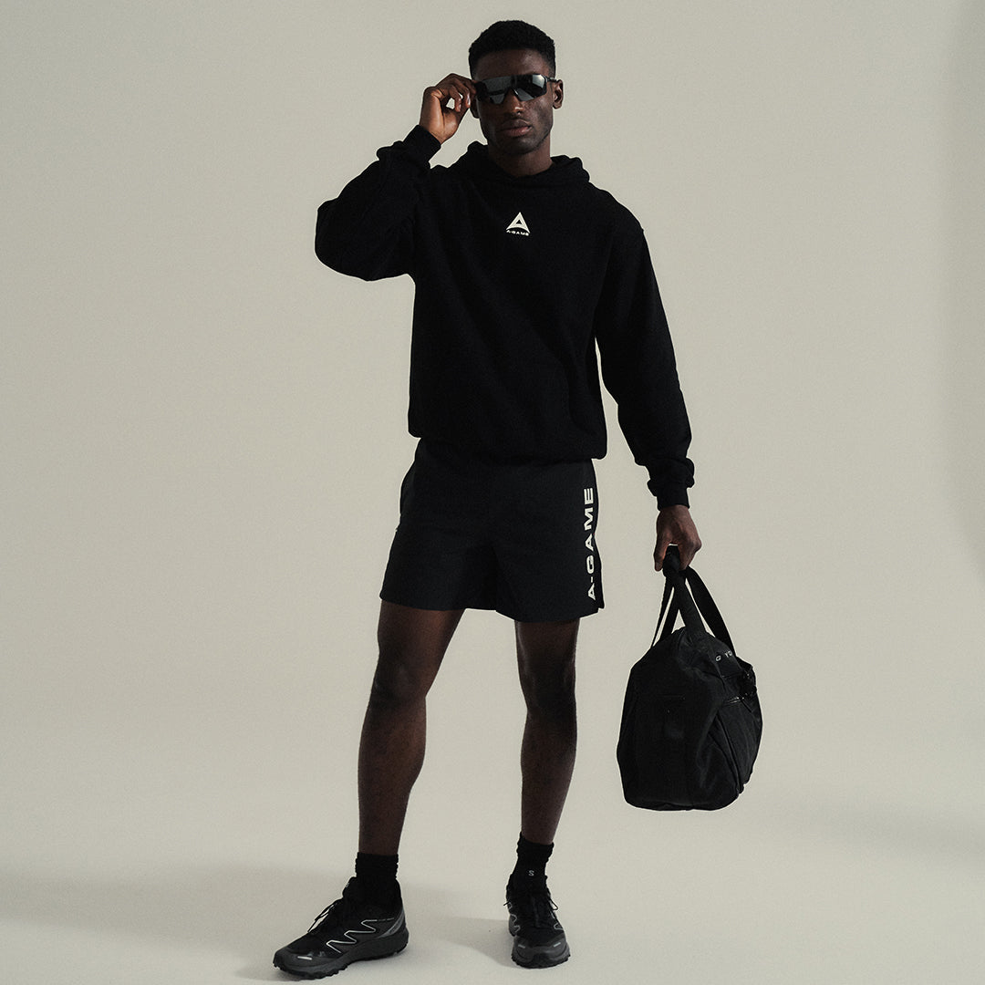 MENS A-GAME LOGO GRAPHIC RELAXED HOODIE - BLACK